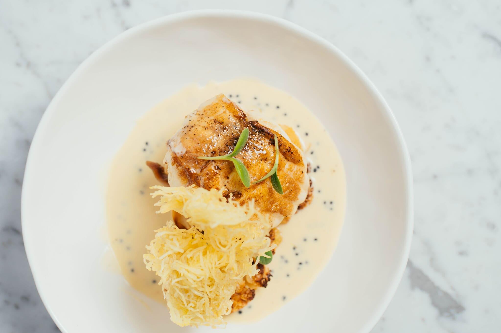 Hoofdgerecht optie 1 - Skrei (Mousseline - aardpeer - biet - parmezaan)