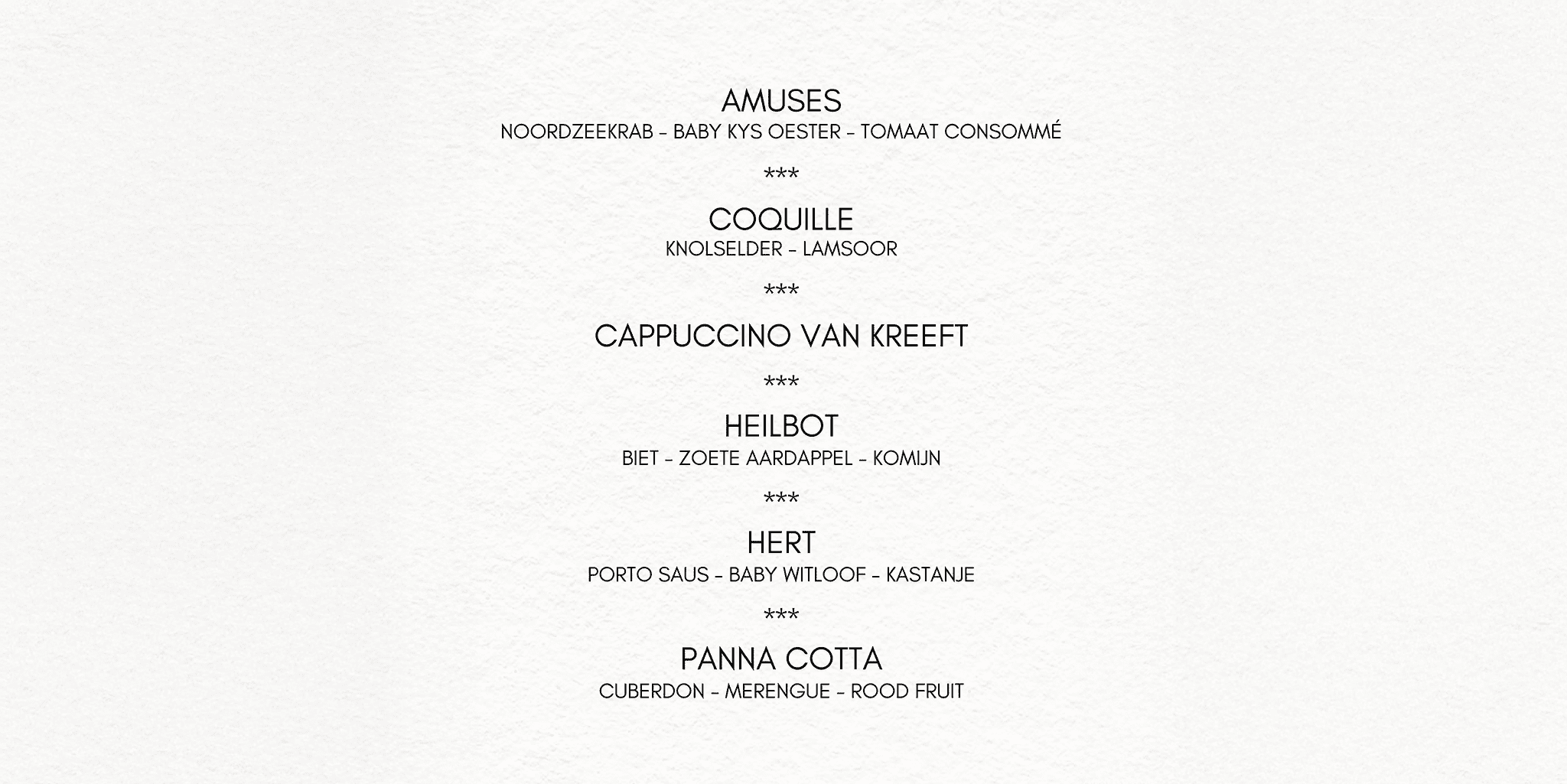 Onze chef serveert dit jaar een feestelijk 6-gangen kerstmenu boordevol lekkers uit de zee… met een verrassend vleesgerecht erbij voor de liefhebbers.